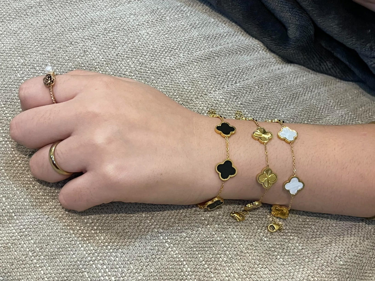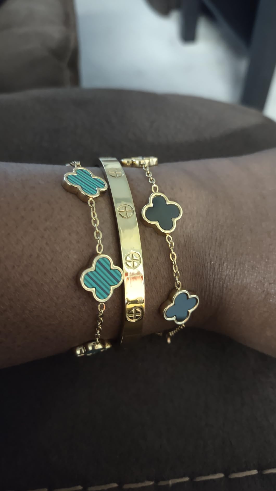 ✅ 1x Pulsera Van Cleef en oro de 18K – Pulsera de acero inoxidable con baño de oro de alta calidad, resistente y brillante.